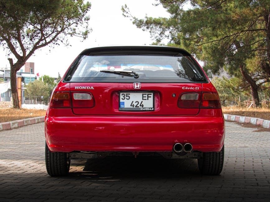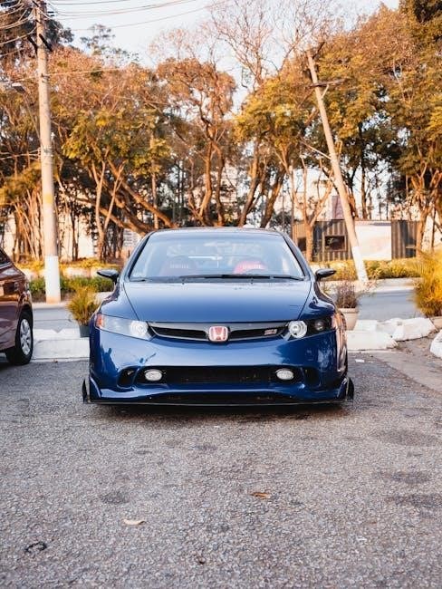 The 2020 Honda Civic owner’s manual provides detailed guidance on exterior features and their operation. It explains the lighting system, including headlights, taillights, and turn signals, and how to adjust them for optimal visibility.