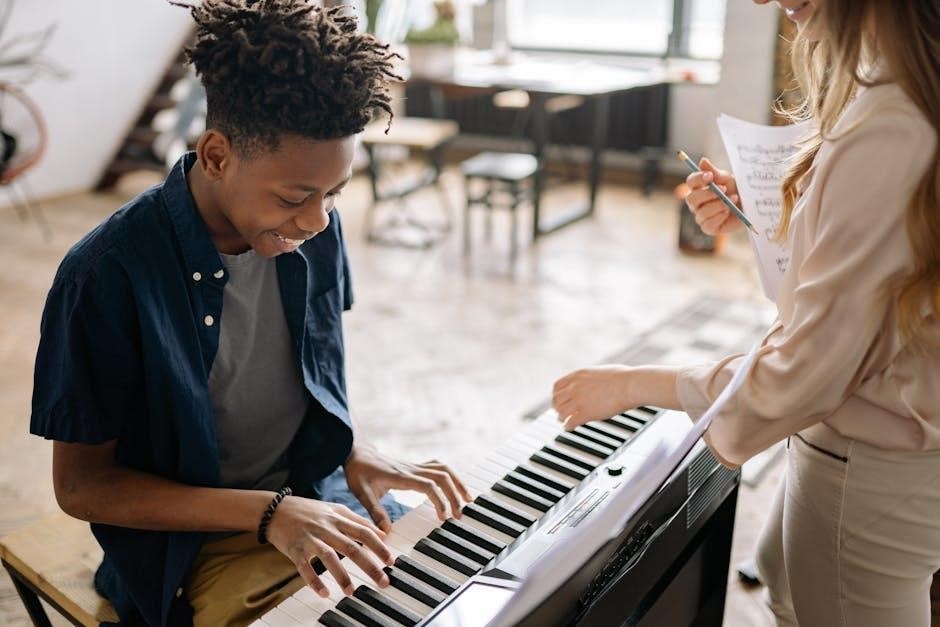 Duet and ensemble arrangements of Bohemian Rhapsody offer a fresh, collaborative approach to the iconic song. These versions divide the intricate composition between multiple pianists, allowing for a dynamic interplay of melodies and harmonies. Duet arrangements often split the workload, with one pianist handling the main theme while the other manages accompaniments or counterpoints. Ensemble versions, involving three or more players, can replicate the song’s layered complexity more faithfully. These arrangements are perfect for group performances, fostering teamwork and creativity. They also provide an opportunity to explore the song’s dramatic shifts in tone and tempo collectively. Such collaborative renditions add a new dimension to the piano interpretation of Bohemian Rhapsody.
