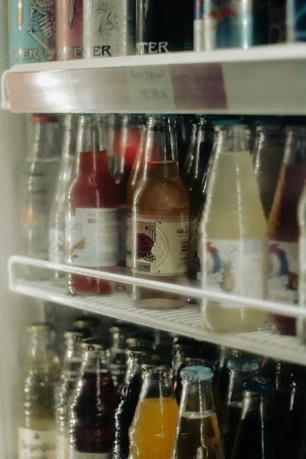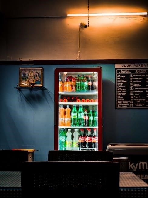 Periodically clean the condenser coils to ensure efficient cooling. Proper ventilation is also essential; avoid blocking vents. Defrosting should be performed when ice buildup exceeds ¼ inch, following the manufacturer’s instructions to prevent damage. Consistent care ensures reliable operation.