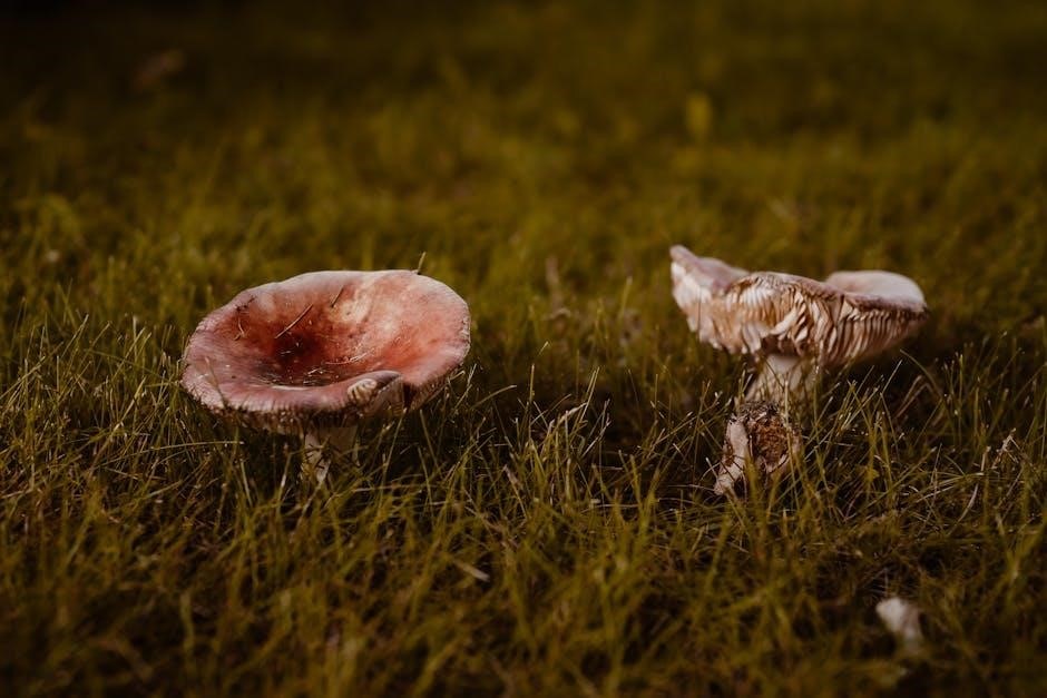 The presence of a ring (annulus) – a remnant of the partial veil – or a volva (cup-like structure at the base) are significant. Guides illustrate these structures clearly, as they are vital for distinguishing between edible and poisonous species, aiding accurate identification during foraging.